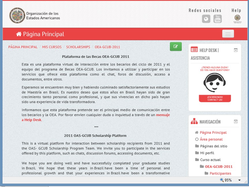 I was the project coordinator for the Brazilian Scholarship Program PAEC OAS-GCUB and I placed over 500 students from the Americas in Brazilian universities. The PAEC OAS-GCUB aims to contribute to the integration and strengthening of the Americas and train leaders capable of acting in different sectors, such as universities, research institutions, government agencies, the private sector, and others. In addition, I overviewed the information included in the OAS-GCUB Platform (Moodle) and necessary updates and maintenance.